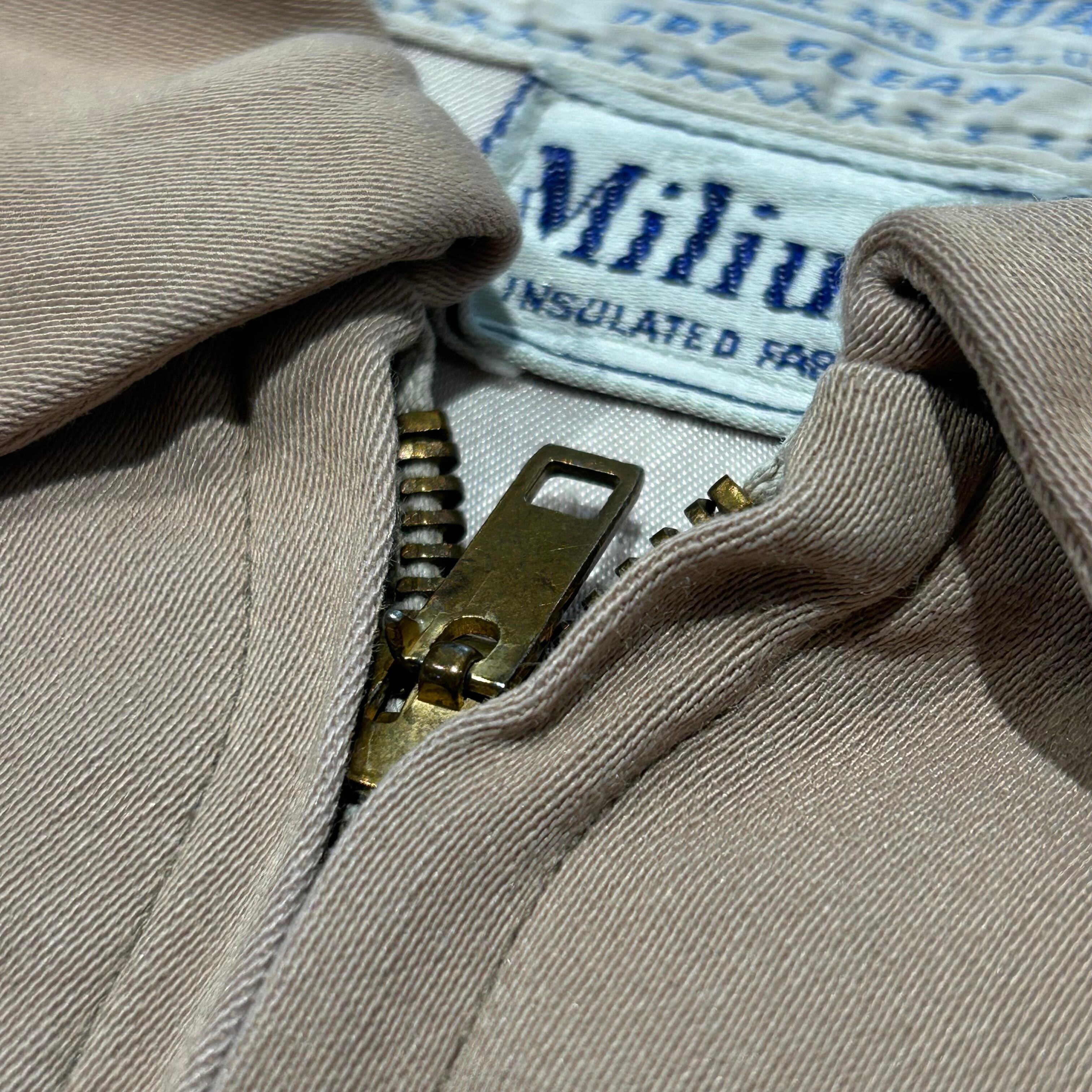 袋縫いの襟、片爪ジップなど、50sらしいディテールも魅力的な1枚。