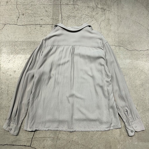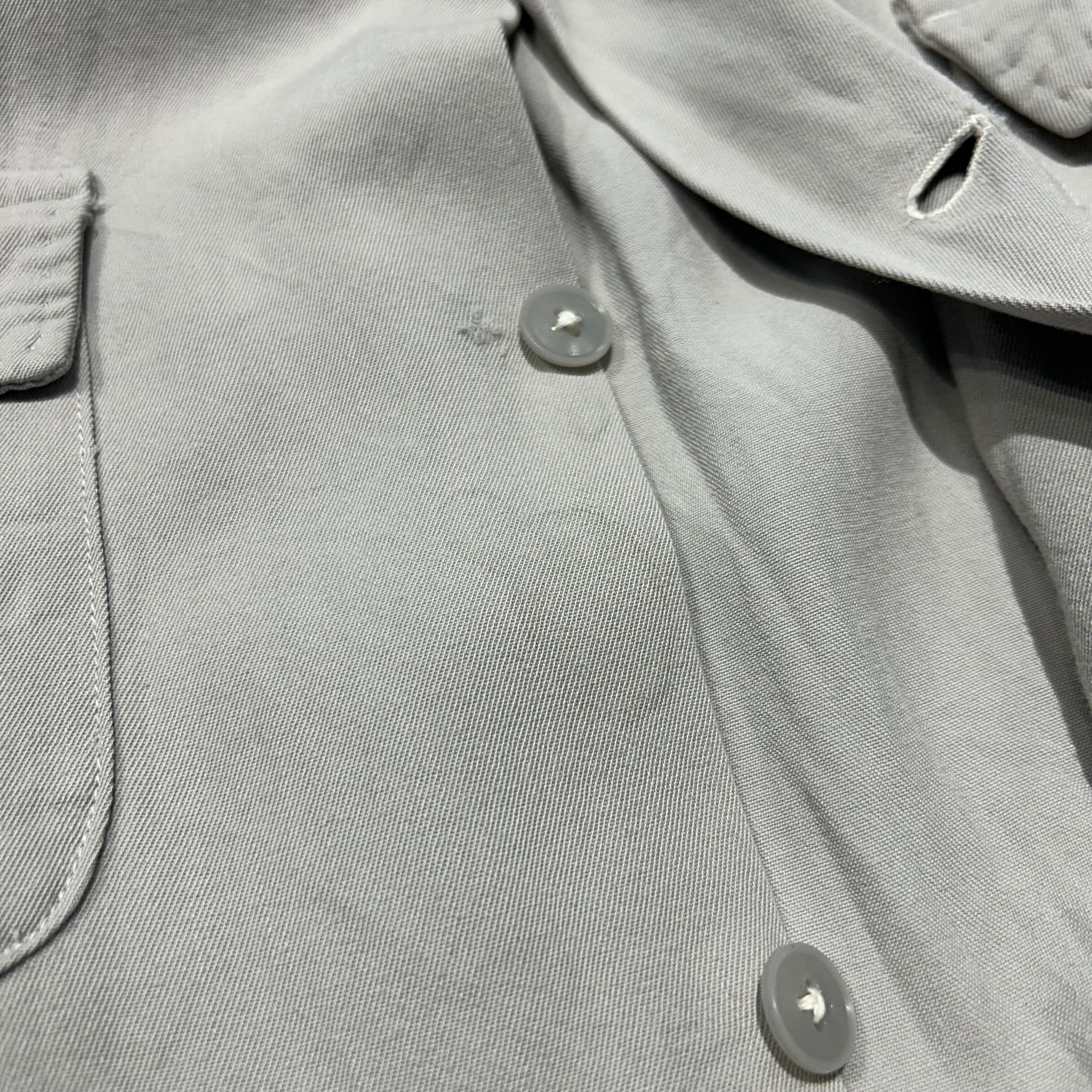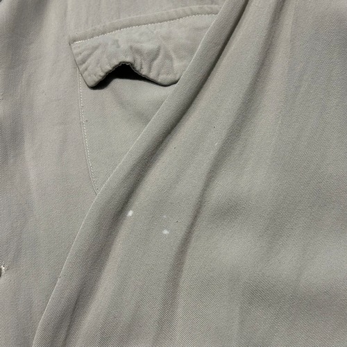 やや大きく丸みのある襟の形状、パッチポケットのディテールやレーヨン×ギャバジンならではのドレープ感が魅力の1枚です。