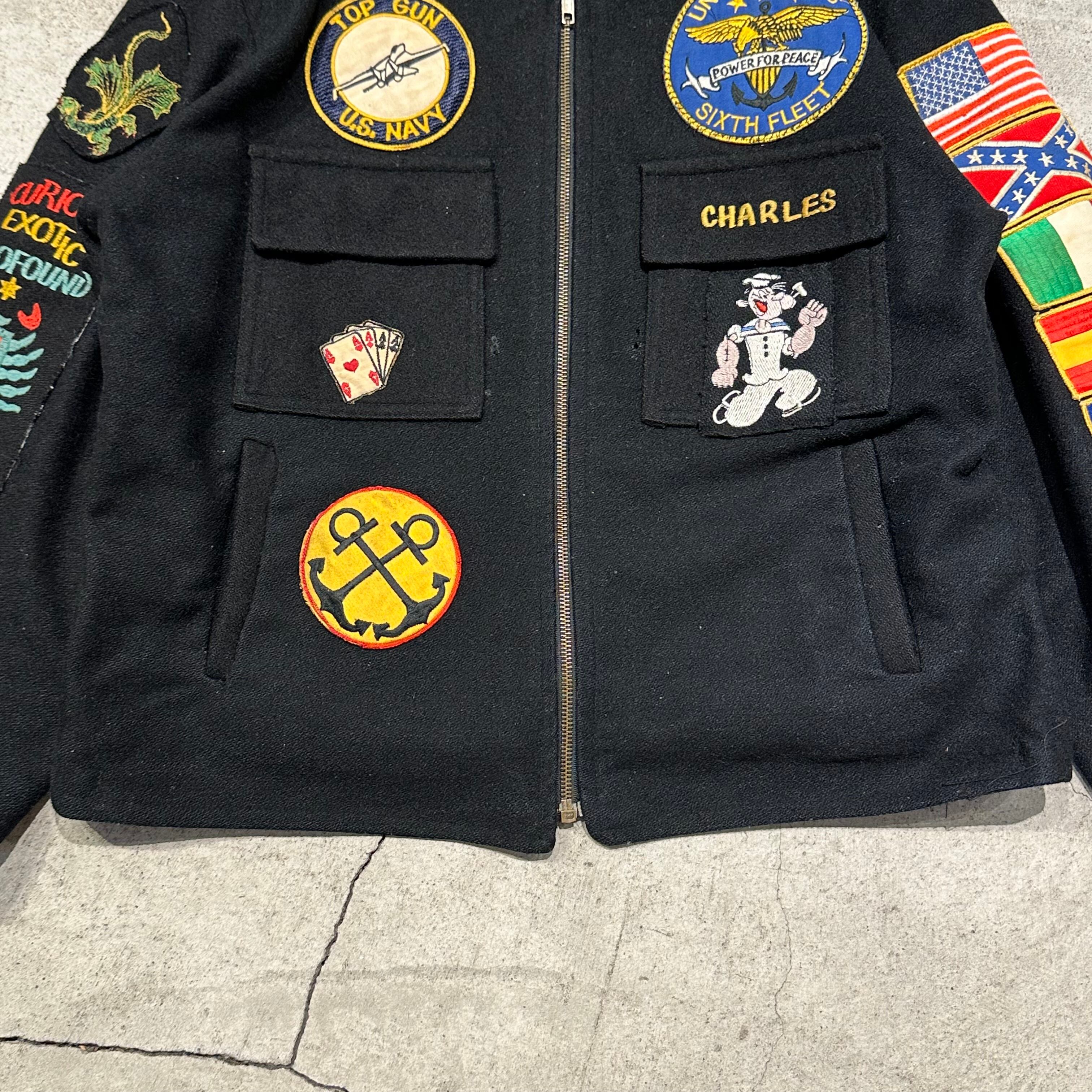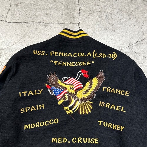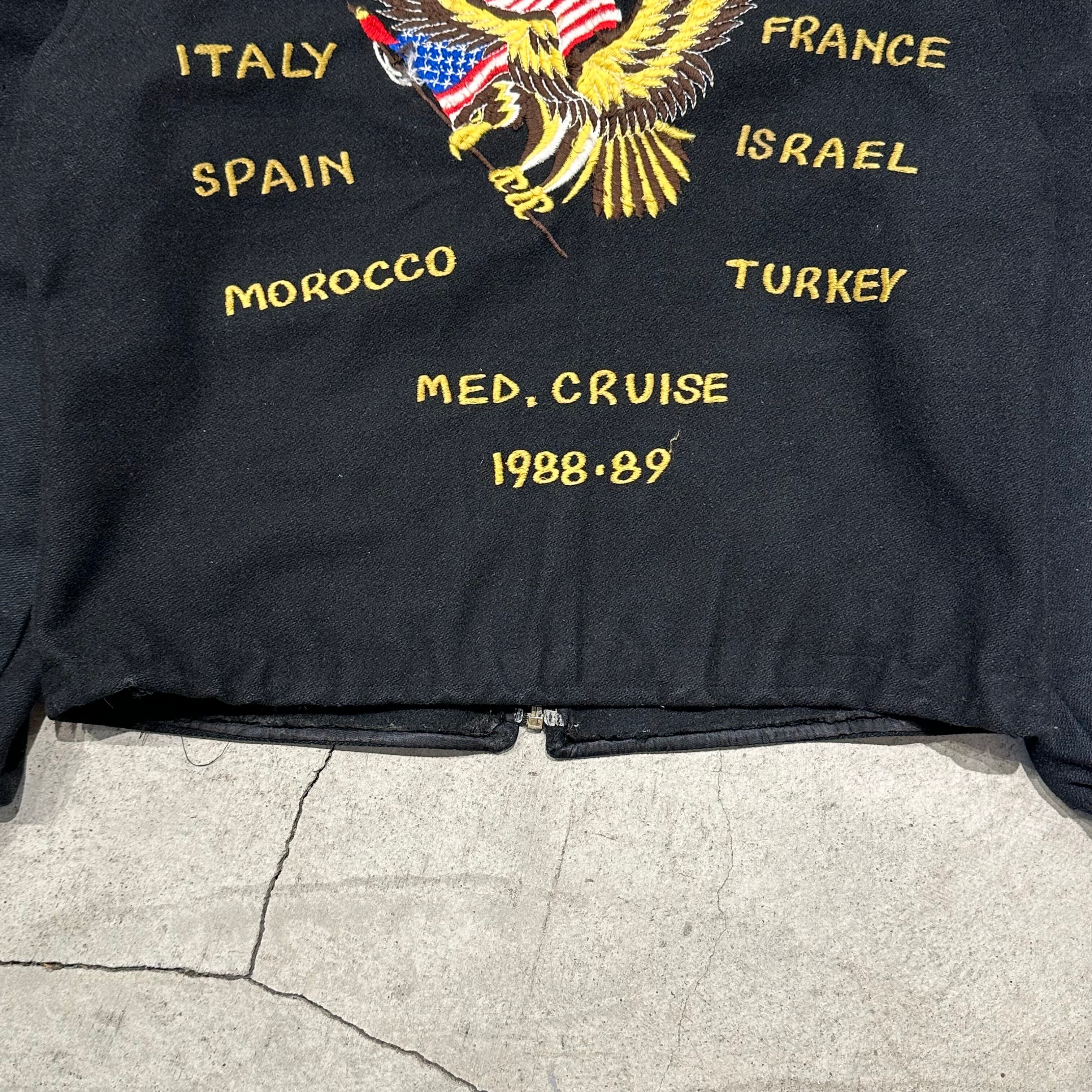 ジャケット背面には「MED. CRUISE(Mediterranean Cruise)」と刺繍されており、米海軍第6艦隊(Sixth Fleet)の一員として地中海を巡航していたことを示します。