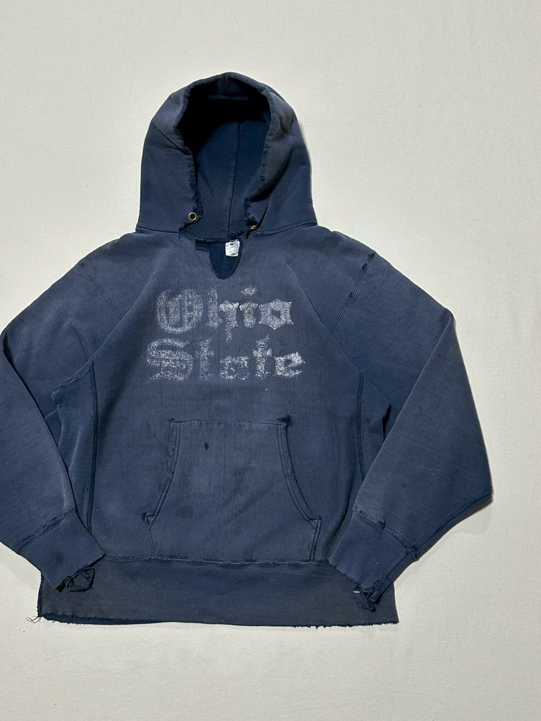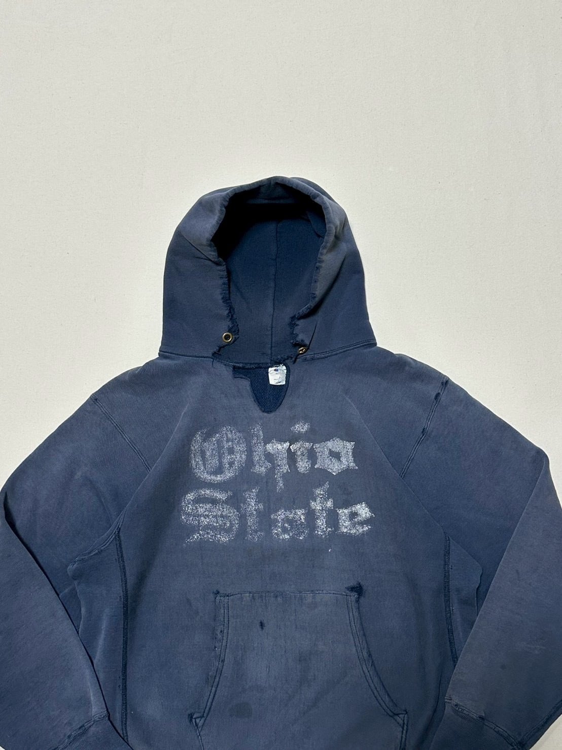 ネイビーボディーのフェードとダメージ、クラックしたプリントが相まって雰囲気の良い1枚です。