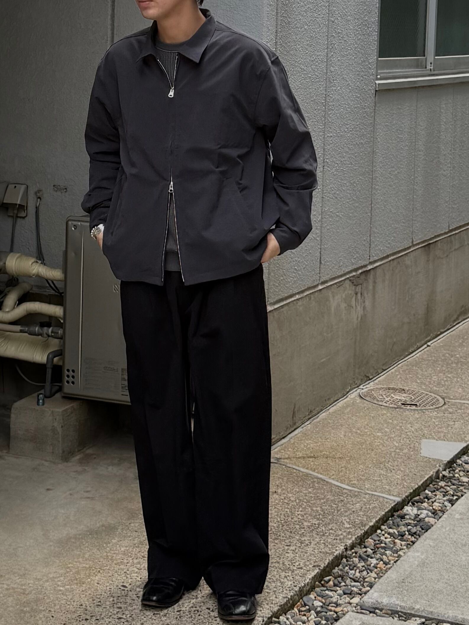 ブルゾンはスウィングトップベースのミニマルなデザイン。